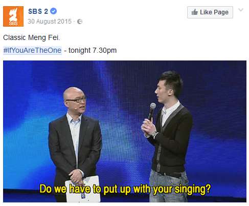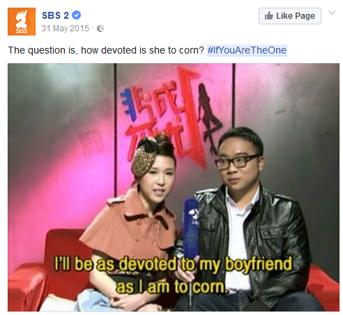 Ideas of context and relevance underlie the social media marketing of If You Are The One: “sayings in the form of subtitled screen shots can be re-interpreted out of original Chinese context and in the newly ‘created’ Australian context”, says Han. To pinpoint the mechanisms by which this works is beyond the scope of this article, but attendees at Dr Han’s talk can expect to be filled in. Meanwhile, I will just refer you to the accompanying images: proof enough, I think, that – contrary to expectations – comedy can indeed be “found in translation”.
